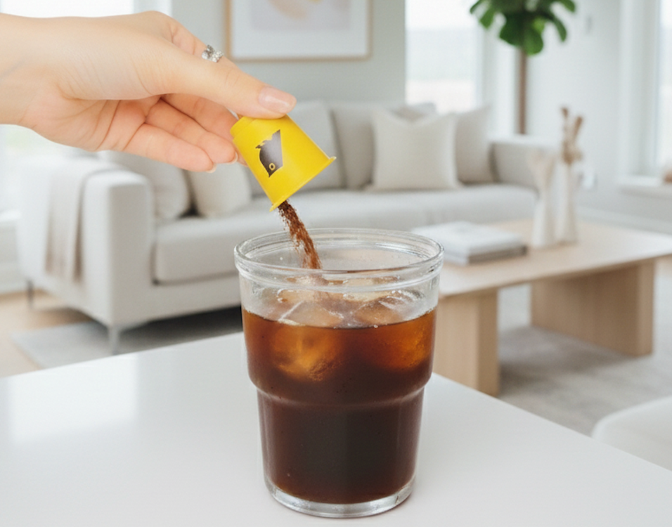 - Pour the freeze-dried coffee powder into your cup.