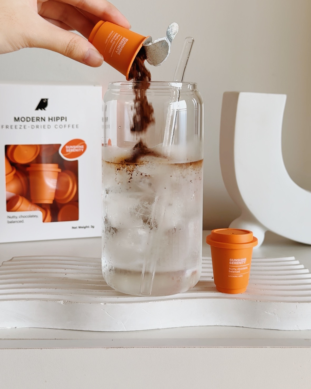- Pour the freeze-dried coffee powder into your cup.